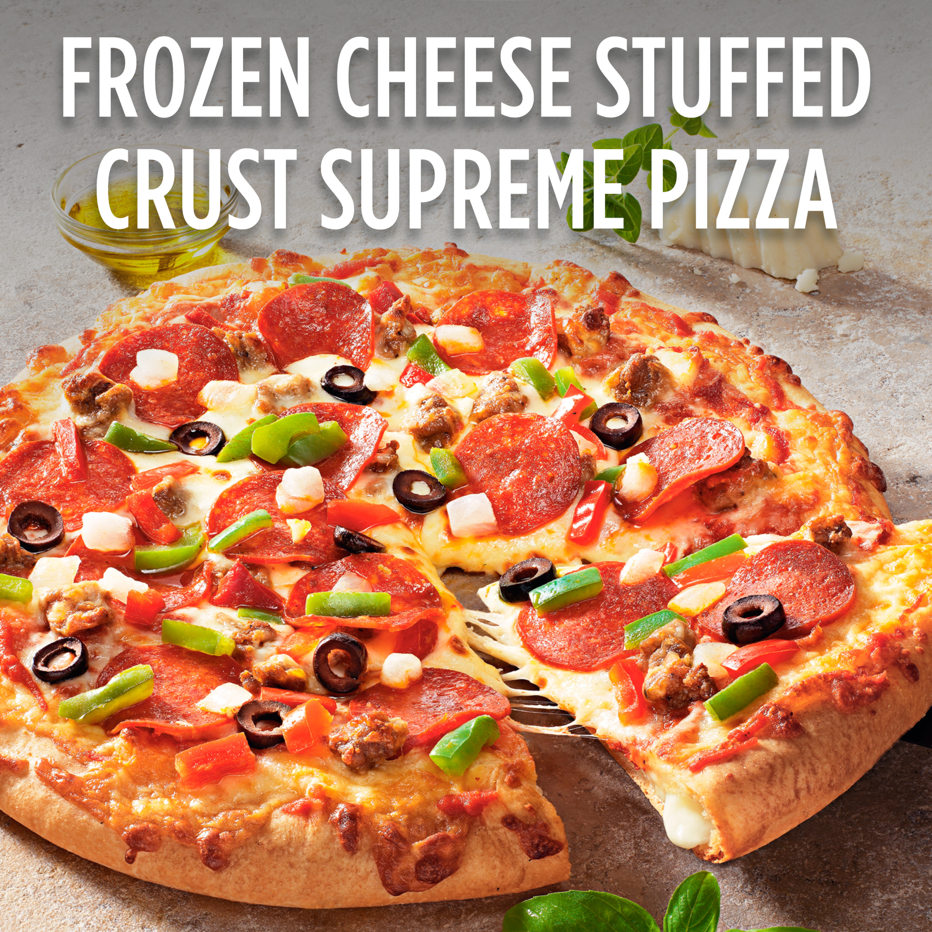 Digiorno pepperoni cheese stuffed crust pizza. This supreme pizza delivers on delicious every time. Digiorno cheese stuffed crust frozen pizza is the best. Get ready for hot, melty cheese in every bite with a stuffed crust pizza that can only come from the best place of all, your oven! Supreme cheese stuffed crust (1/6).