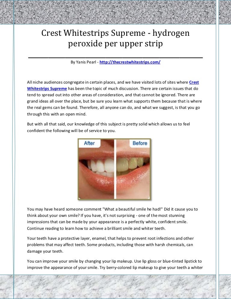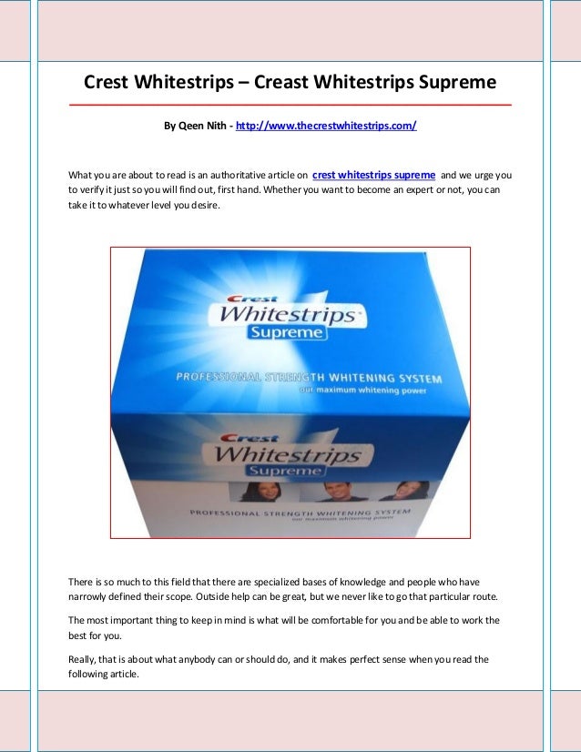 Creast Whitestrips Supreme from image.slidesharecdn.com I was given one set of crest whitestrips in a giftbag. This depends on which strips you are using. How to perform individual treatments. Find out how often you should use crest 3d white whitestrips as well as the recommended length of time to wear them for. Most of these strips you leave in place for 30 minutes each day unless you're using an express treatment, which requires you. You place the strips on your teeth and follow the time as directed. Box says to use once a year. Are extensions bad for yur hair, and how long should you leave them in?