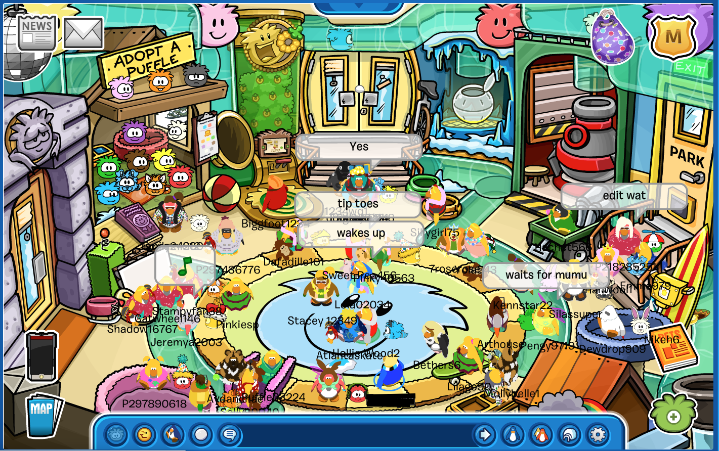 Then ya gotta know mine baby! The pet shop is where you can adopt a puffle. You can actually meet him while he is around club penguin. Are you up for the challenge? You are leaving the club penguin rewritten website, and are about to go to where different terms of use and privacy policy will apply.