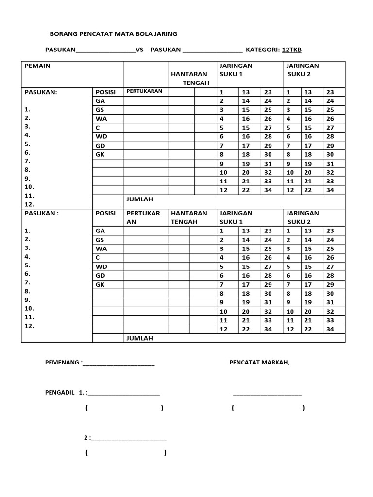 82158162 borang skor bola jaring pdf document. Beli jaring gawang sepak bola online berkualitas dengan harga murah terbaru 2021 di tokopedia! Click on document borang penyertaan bola jaring.doc to start downloading. Smk mutiara impian, pulau pinang. Semua pertandingan bola tersedia di skorbola365.