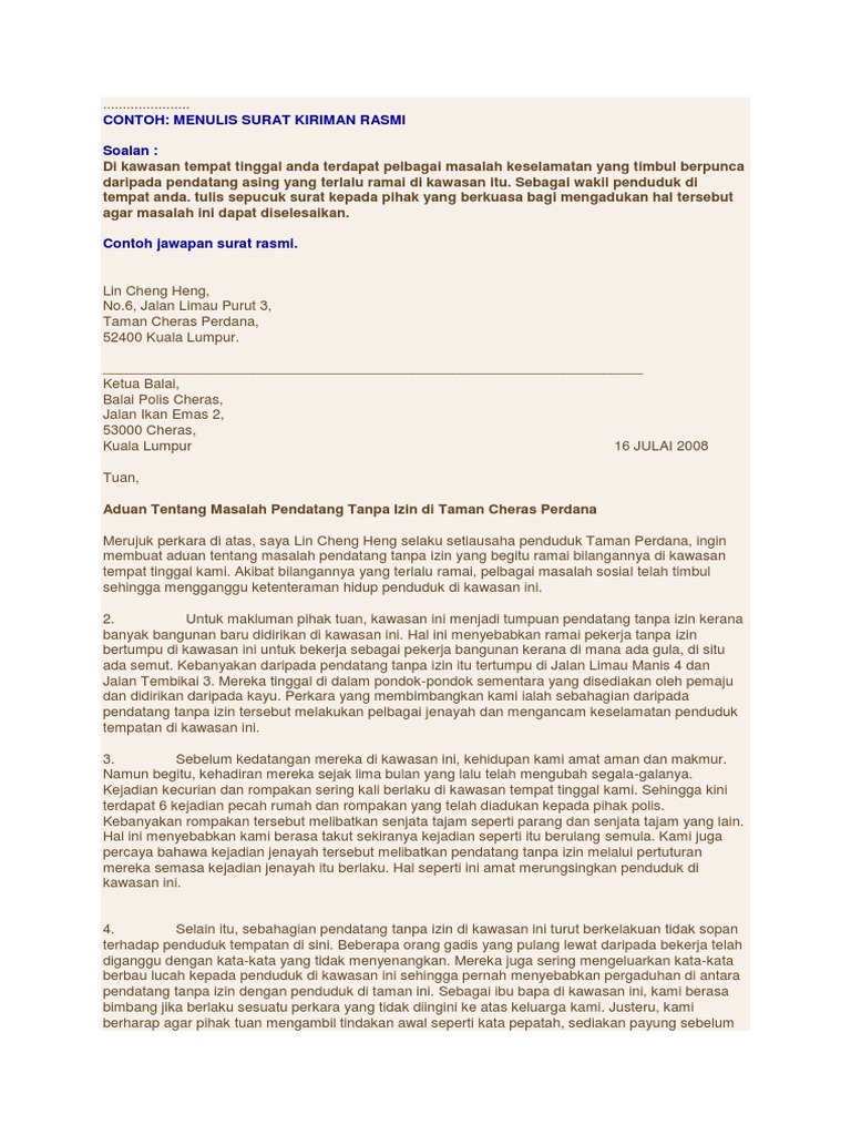 Surat Kiriman Tidak Rasmi (1) from imgv2-1-f.scribdassets.com Untuk memudahkan sesiapa yang perlu menulis surat kiriman rasmi. Surat rayuan perumahan, cara menulis surat rasmi rayuan, surat rasmi rayuan meneruskan pengajian, surat rasmi rayuan kolej, surat rasmi rayu. Sila beri maklum balas di sini. Contoh surat rasmi bahasa english. Menemui sahabatku sarah yang kini berada di kelantan. Lazimnya, surat kiriman rasmi dalam agensi kerajaan dihantar untuk menyampai atau mendapatkan maklumat, arahan, tindakan dan keputusan. Surat kiriman rasmi aduan kerosakan. Surat kiriman rasmi adalah surat bertajuk yang singkat dan padat tanpa ayat panjang dan bahasa kiasan.